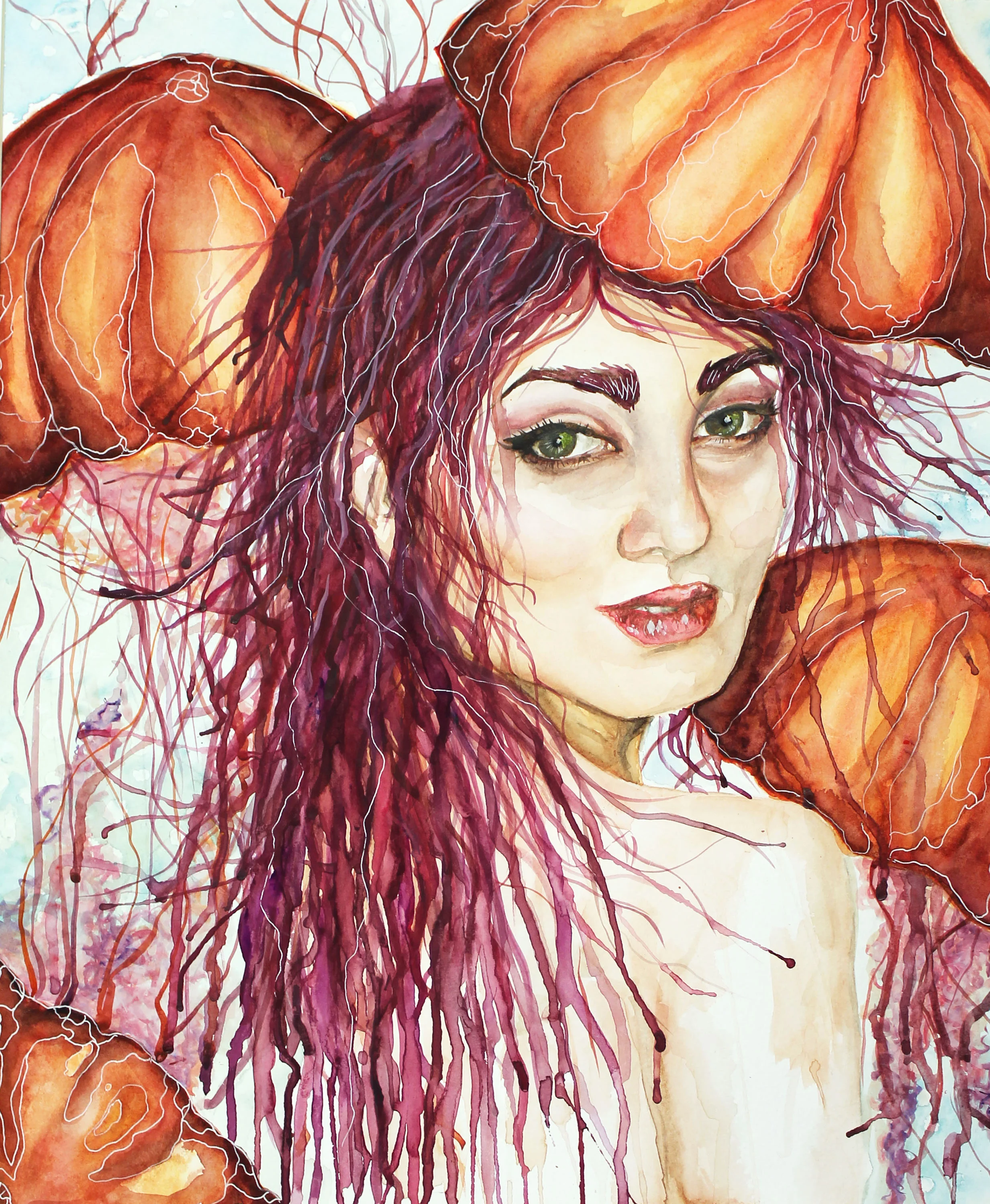 Jellyfish | Watercolor and white gel pen