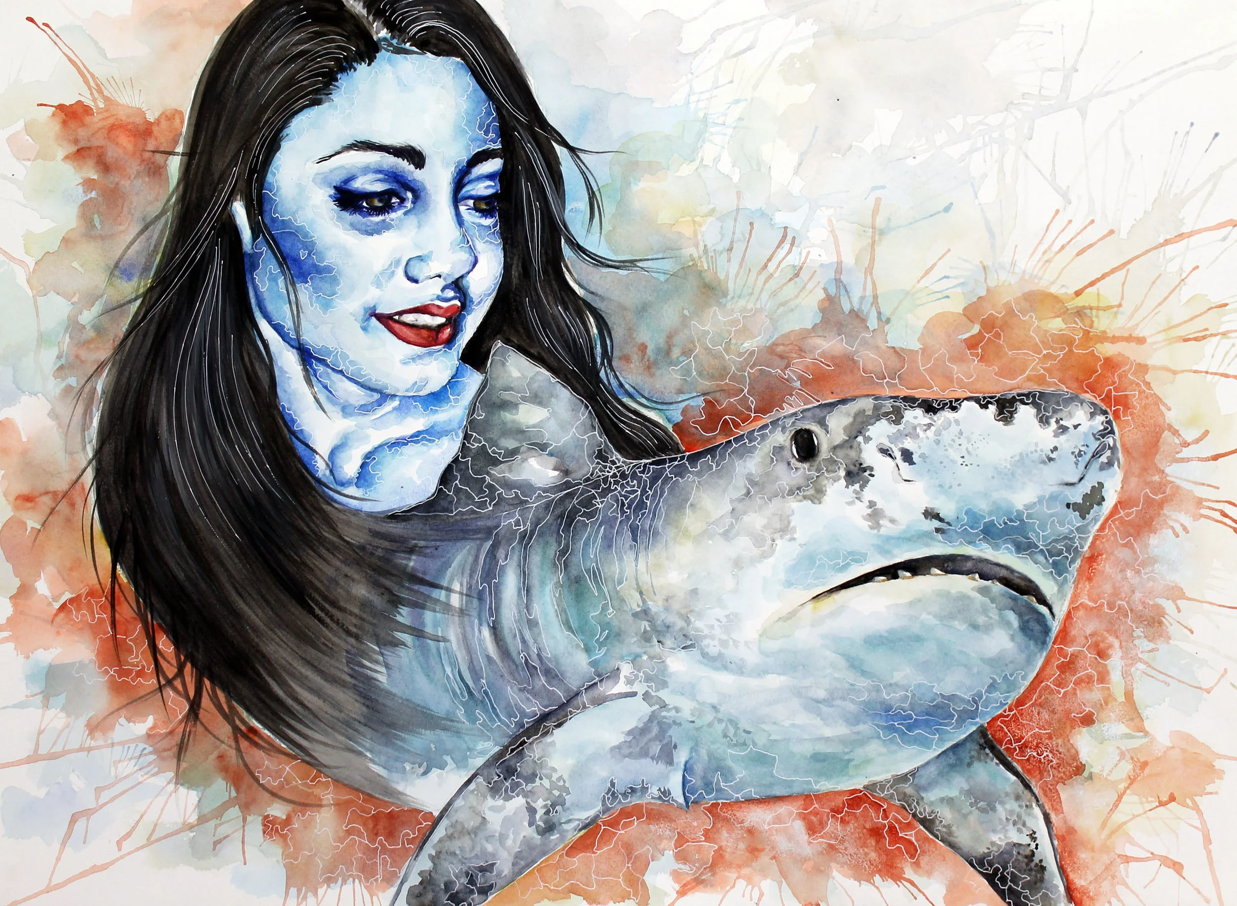 Shark | Watercolor and and white gel pen