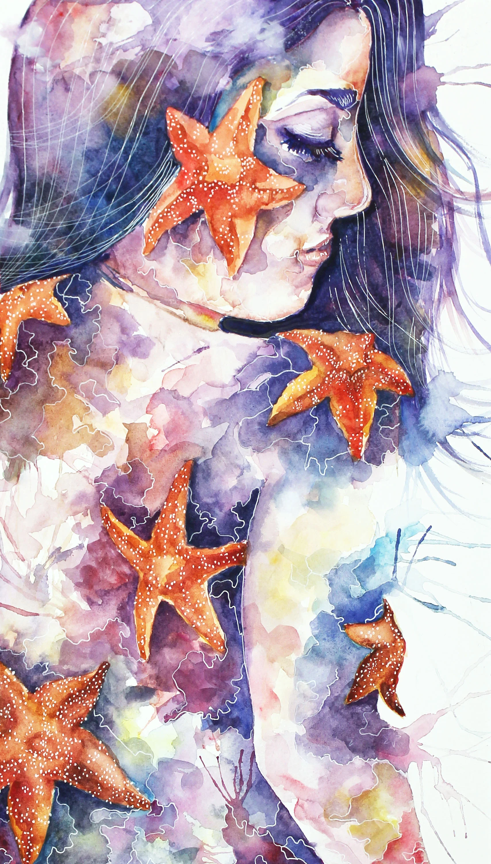 Starfish | Watercolor and white gel pen
