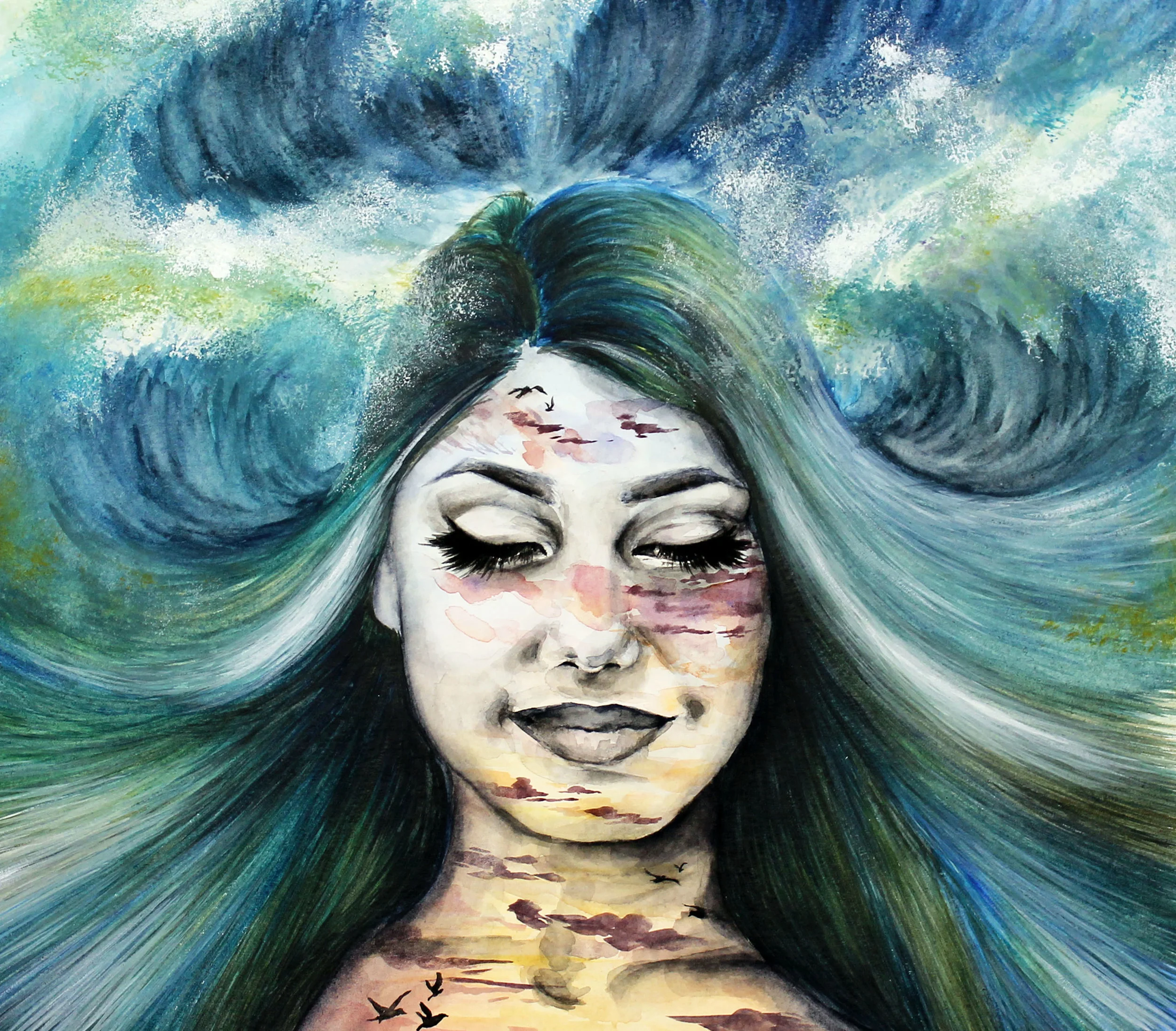 Wave (Sunset) | Watercolor and mixed media