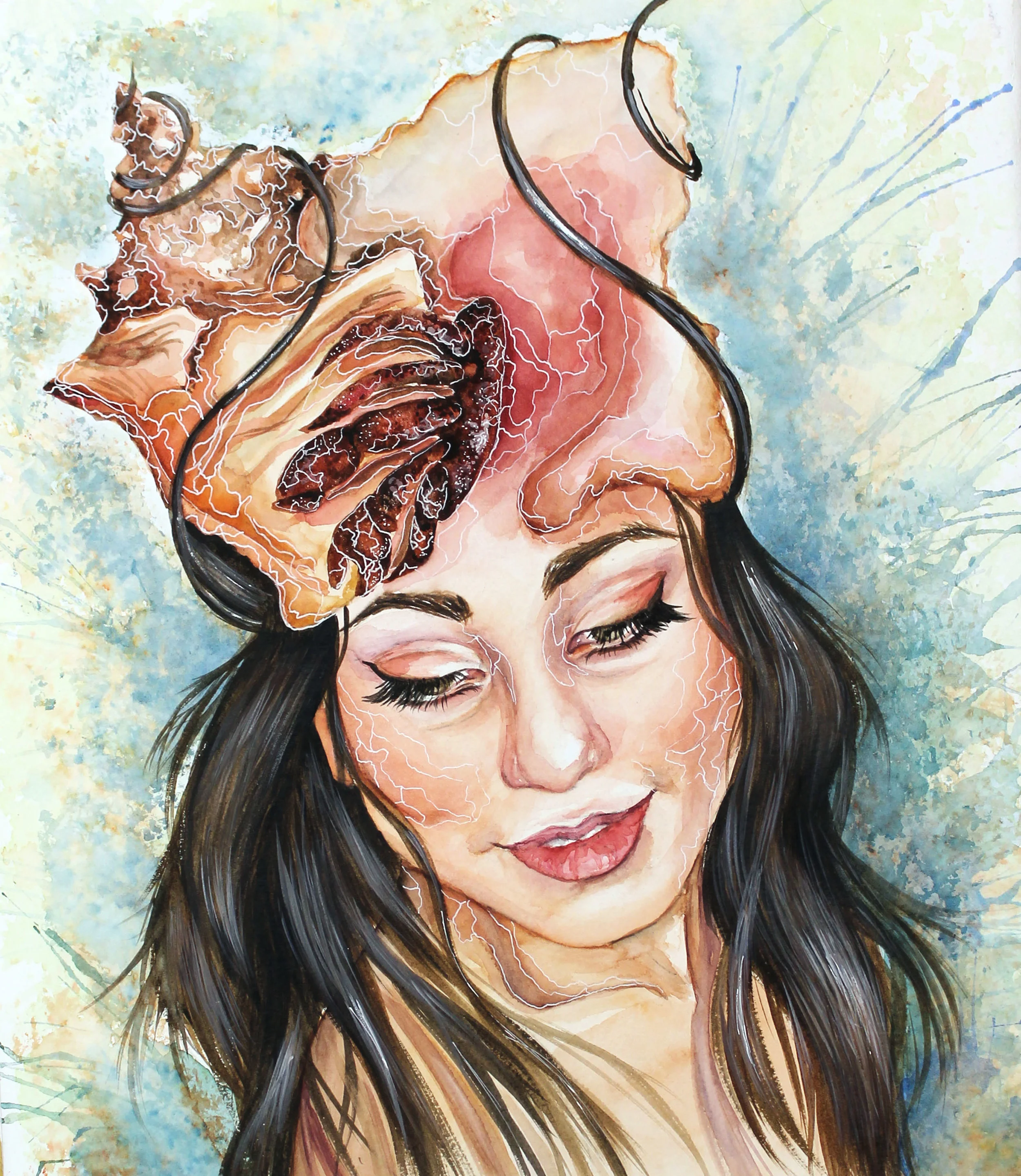Conch | Watercolor and white gel pen